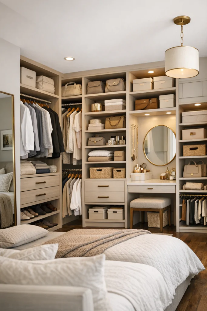 For smaller layouts, use small bedroom storage ideas for couples master closet ideas combined with built-in shelving.