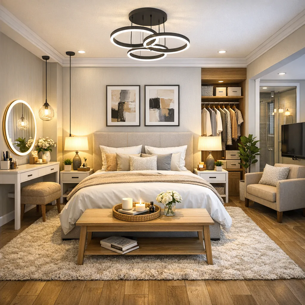 For larger rooms, try large bedroom ideas master suite open floor concepts where the sleeping zone flows into a conversation area. If you’re working with compact dimensions, explore home decor bedroom master small rooms ideas that use slim-profile chairs and smart zoning rugs.