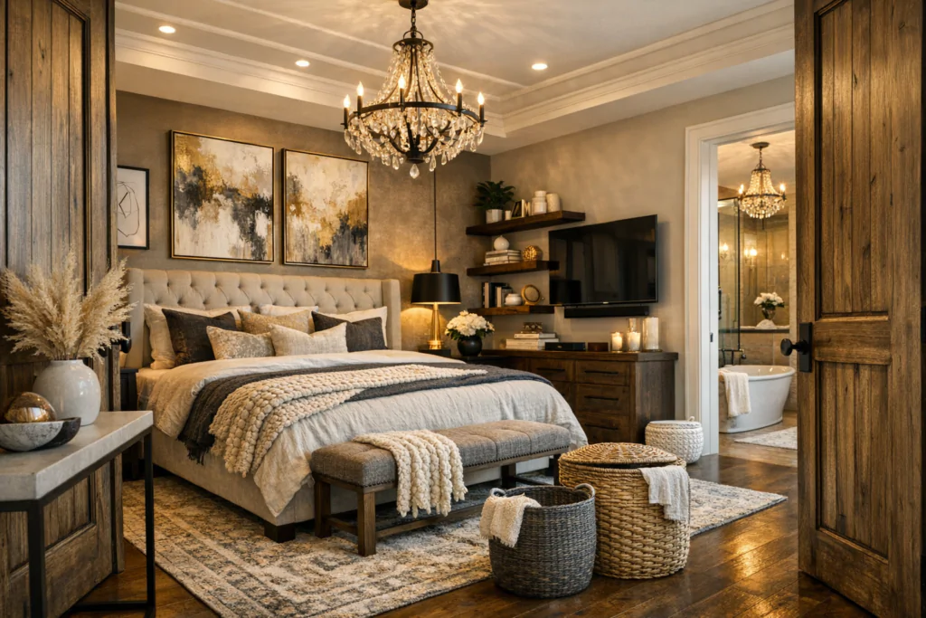 Creating a luxury master suite is about more than choosing beautiful furniture — it’s about designing a personal retreat that blends comfort, elegance, and smart functionality. Whether you love modern minimalist interiors, rustic farmhouse charm, coastal calm, or boho chic layers, these 20 ideas will help you design a dream-worthy space.