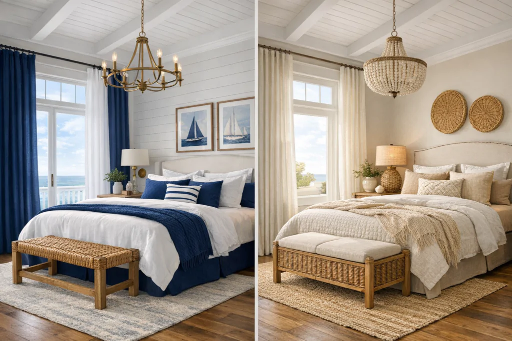 Calm, airy spaces are trending in coastal bedroom ideas master suite. Choose coastal bedroom ideas master suite color palettes navy paired with crisp white for a nautical feel.